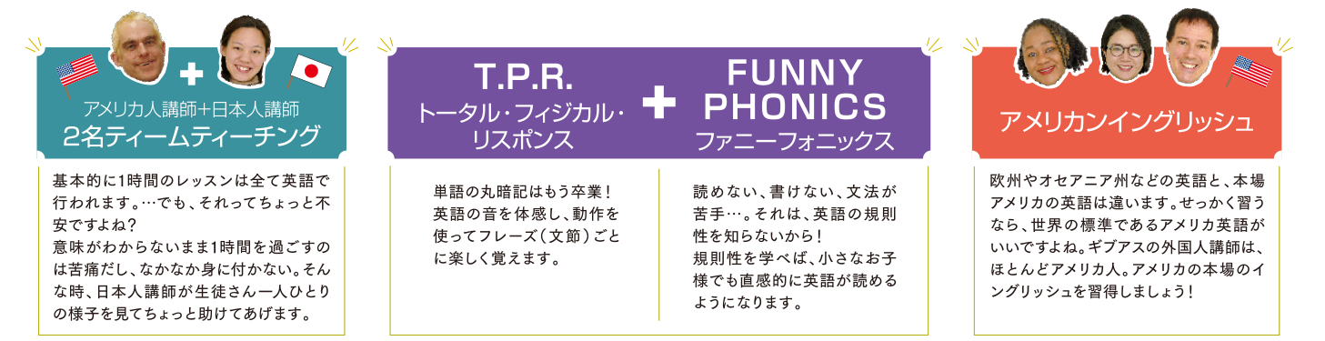 アメリカ人講師+日本人講師2名ティームティーチング